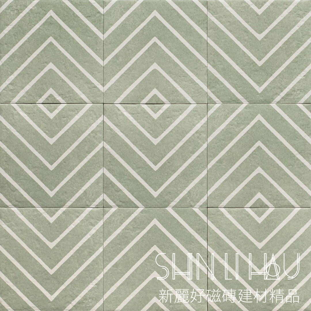 楔翠綠園 Green Garden|20×20 歐洲進口拼花磁磚|綠色幾何設計|牆地兩用 - 綠園F1