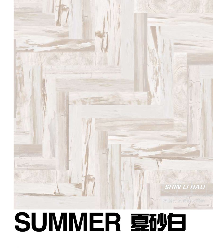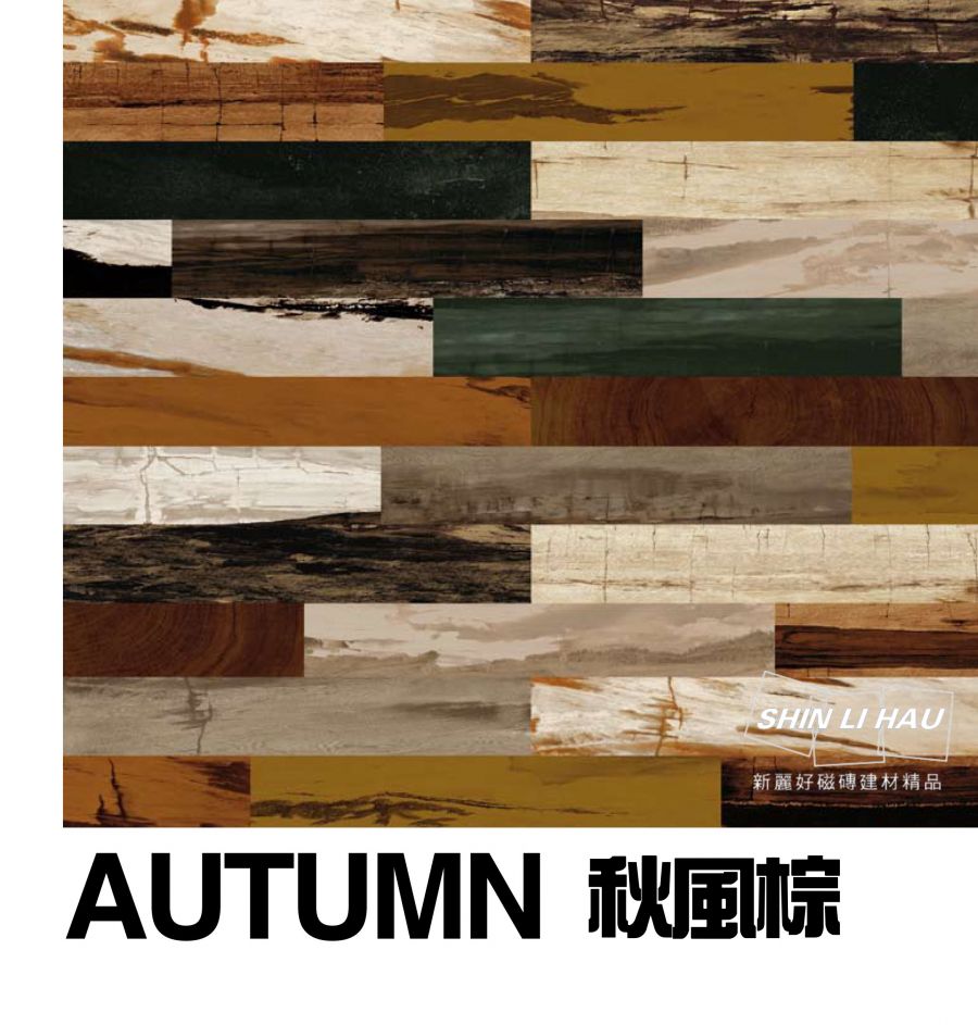 設計靈感來自於從舊式木頭堆中以不同木種加以混色創新,有代表夏季風情的「夏砂白」與冬日繽紛的「幻影黑」、秋意濃厚「秋風棕」,讓木紋磚不再像以前只能侷限於單調的色彩,其煥然一新的設計讓您驚嘆的「WOW」!